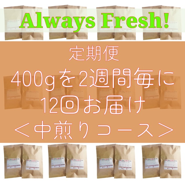 Always Fresh!~店主にお任せ【定期便400gを2週間毎×12回(6ヶ月)】<中深煎り>プレミアムコーヒーをお届けします