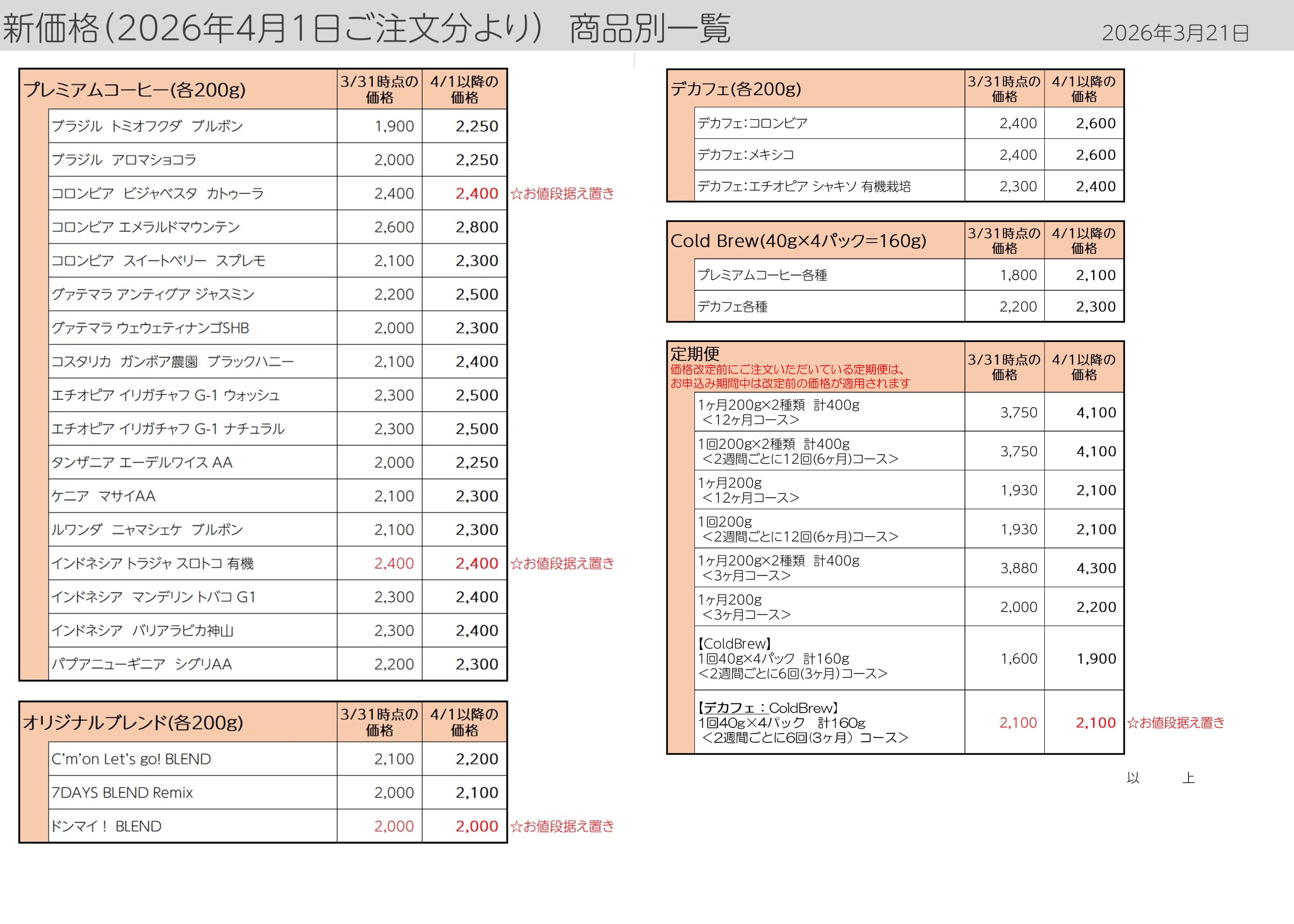 なお、今回の改定に伴い、現行価格での定期便のご注文受付は3月25日(水)23:59をもって終了させていただきます。
