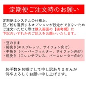 こちらはシステムの仕様上、豆/粉を選択するオプションを設定できないので、大変お手数ですが、ご注文いただく際は購入画面の【備考欄】に下記からいずれかをお選び、ご記入をお願いいたします。