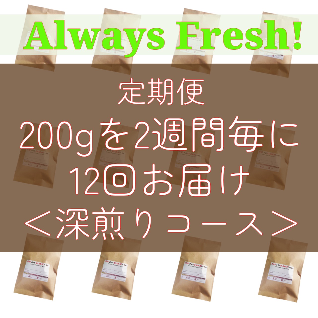 Always Fresh!~店主にお任せ【定期便200gを2週間毎×12回(6ヶ月)】<深煎り>プレミアムコーヒーをお届けします