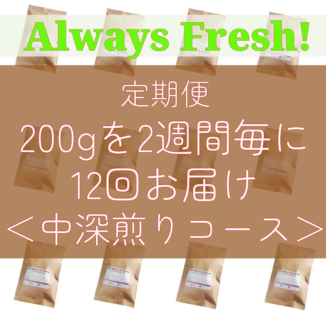Always Fresh!~店主にお任せ【定期便200gを2週間毎×12回(6ヶ月)】<中深煎り>プレミアムコーヒーをお届けします